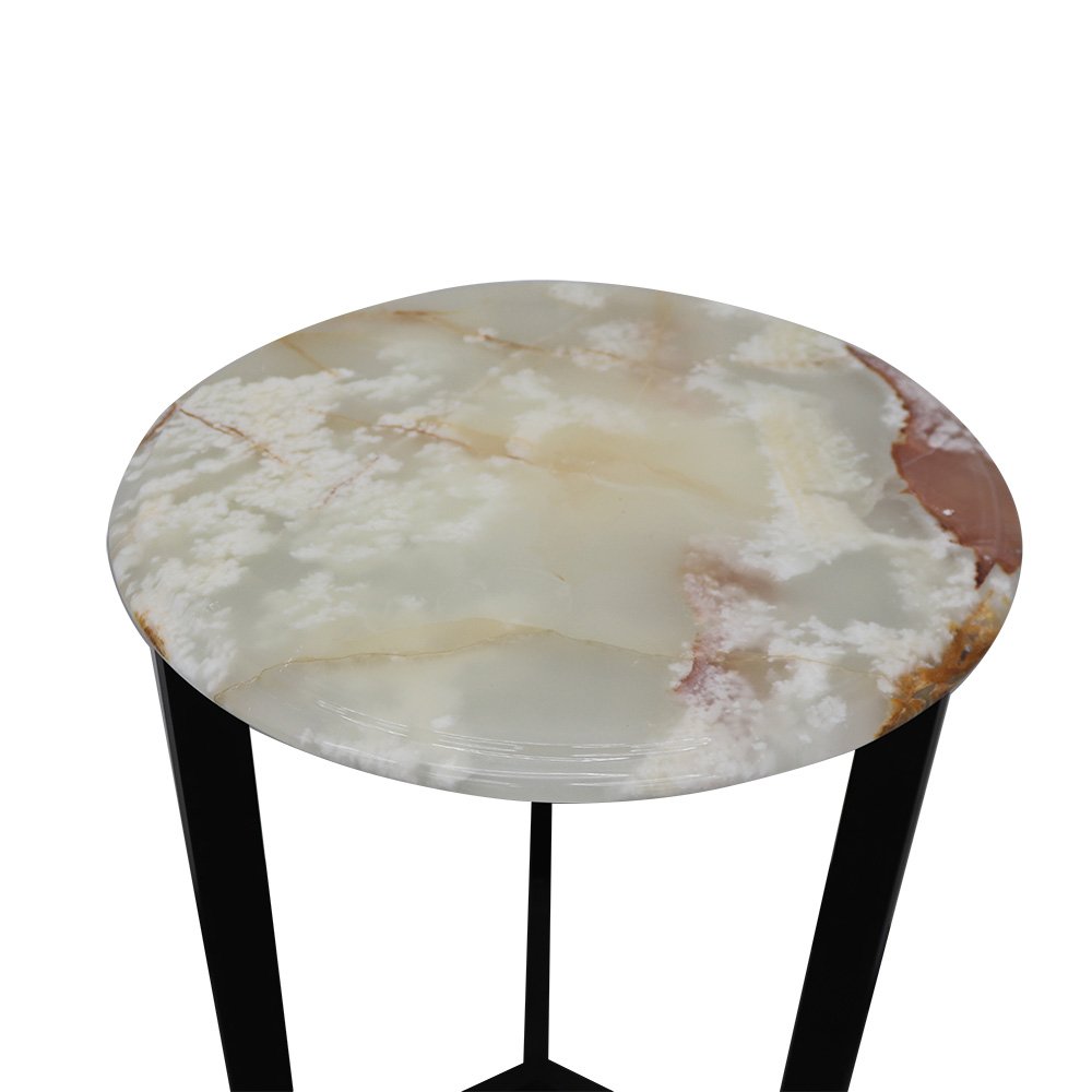 Hand-Polished Round Light Green Onyx Marble Accent Table with Geometric Black Metal Base