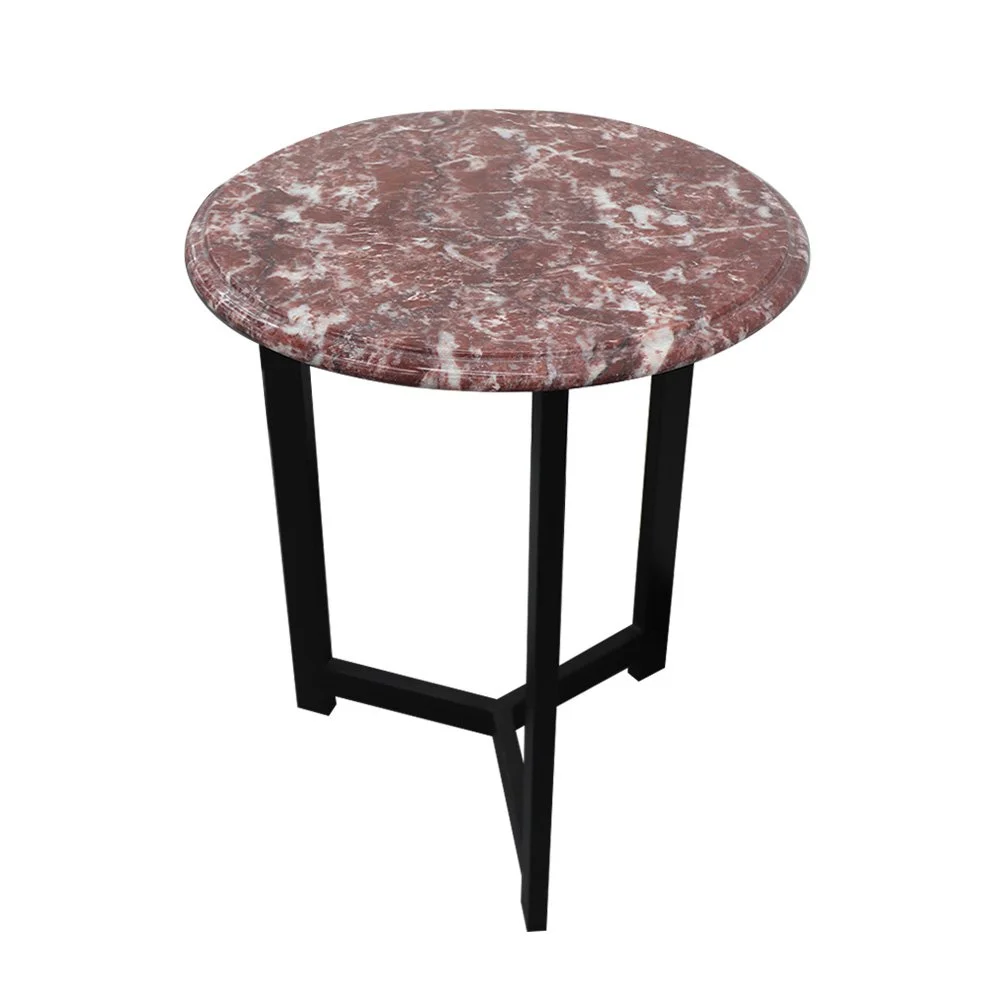 Soft, rosy veining dances across the stone, offering a subtle warmth. The dark frame provides contrast, letting the marble’s character shine. The Hand-Polished Round Pink Onyx Marble Accent Table with Geometric Black Metal Base is a truly glamorous accent piece designed to introduce soft color and light into your interior. The round surface is crafted from genuine Pink Onyx, a luxury stone celebrated for its delicate, rosy hues and high polish, which enhances the marble's natural, crystalline luster. This elegant, translucent top is expertly paired with a crisp, geometric black metal base, creating a perfect fusion of organic softness and contemporary structure, ideal for styling a bright, modern living room or chic bedroom.